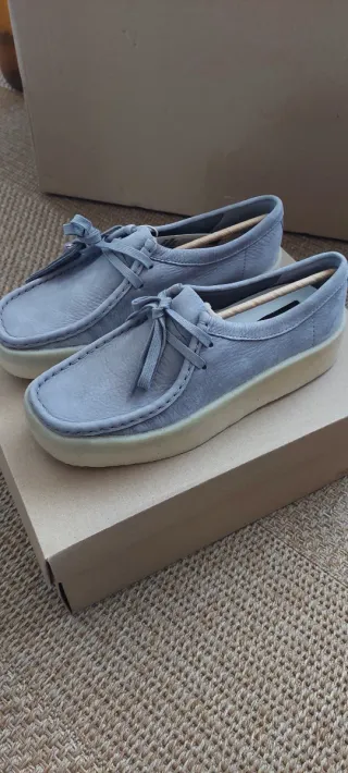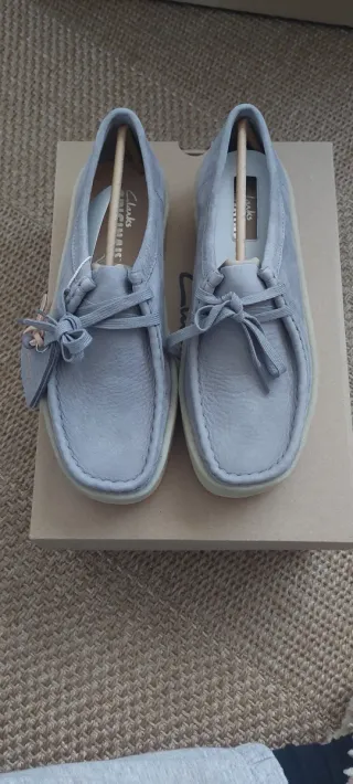 Sapatos Clarks Wallabee Cup em cinza, novos e com etiquetas. - Design moderno e confortável. - Sola robusta para maior durabilidade.