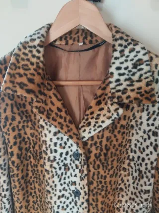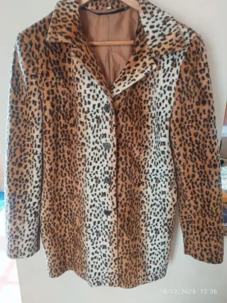 Casaco com um elegante padrão de tigresa. - Padrão animal print. - Fecho de botões. - Gola clássica.