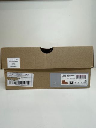 Botas UGG Classic Mini em pele de camurça castanha, tamanho 31. Nunca usadas, estado perfeito. - Design icónico e confortável. - Forro interior macio para aquecimento. - Sola exterior durável.