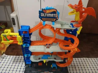 Conjunto de pista Hot Wheels Ultimate Garage com cerca de 80 cm de altura. Inclui vários níveis e percursos. - Pista de carros Hot Wheels. - Modelo Ultimate Garage. - Altura aproximada de 80 cm.