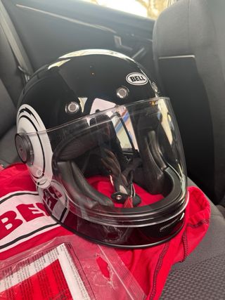 Capacete Bell Bullitt DLX Bolt em preto com design Bolt. - Tamanho L. - Viseira clara. - Detalhes em branco e preto.