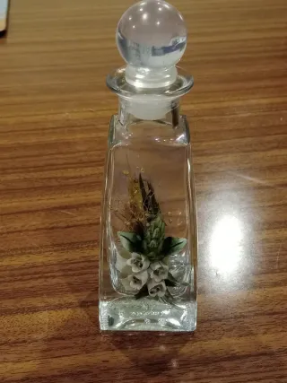 Frasco decorativo de cristal com um arranjo de flores secas no interior. Perfeito para adicionar um toque de charme a qualquer espaço. - Design elegante e delicado. - Contém flores secas e elementos botânicos. - Tampa esférica de vidro. Altura 15.50 cm