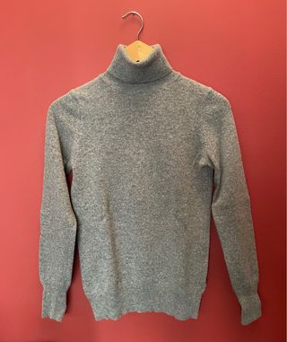 Camisola cinzenta em malha 100% lã virgem. Gola alta e mangas compridas. Tamanho XS, como nova! Malha quente e macia. Largura peito: 42cm Comprimento: 59cm