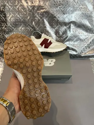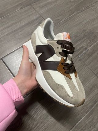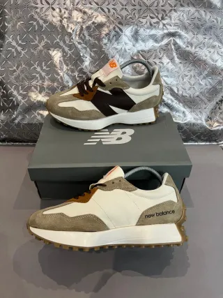 Sapatilhas New Balance 327 em excelente estado, com caixa original. - Design moderno e confortável. - Combinação de cores bege e castanho.