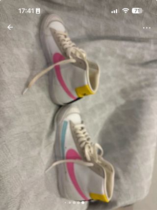 Classic Nike Blazer Mid '77 Vintage in the timeless White/Black colorway. Details: * Style: High top / Mid cut. * Features: Exposed foam tongue (vintage look), suede toe caps, and classic black Swoosh. * Extra: Includes silver lace locks/dubraes on the laces. * Size: Eu 41 Condition: Used condition. The leather upper is in good shape with no major damage. The soles show signs of walking/dirt (see photos of outsole). Plenty of life left. #nike #blazer #mid77 #vintage #white #black #sneakers #hightop #streetwear #retro