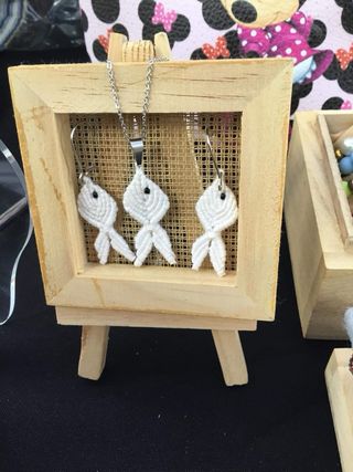 Conjunto de fio e brincos em aço e macrame