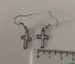 Brincos pendentes com pequena cruz, em aço inoxidável.