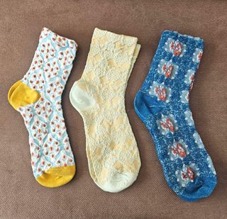 Três novos pares de meias vintage. - Meias em tons pastel - Material macio e confortável - Perfeitas para o dia a dia - Aplicável aos tamanhos 36-42