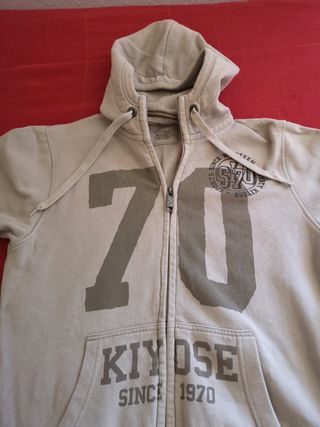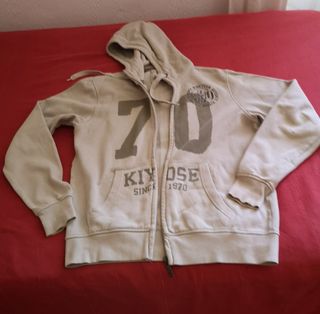 Casaco masculino com capuz. Usado mas em excelente estado. Aperta com fecho éclair, que funciona perfeitamente, apesar de ter cor oxidada de estar guardado ha já algum tempo. Estampa frontal. 100% algodão, ideal para noites de verão.