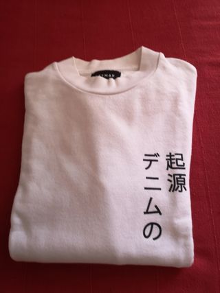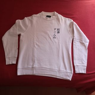 Sweatshirt branca de homem, em bom estado. Largura de ombros 46cm - Impressão na frente no lado direito, impressão grande nas costas. - Tecido macio e confortável (algodão cardado).