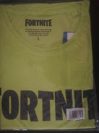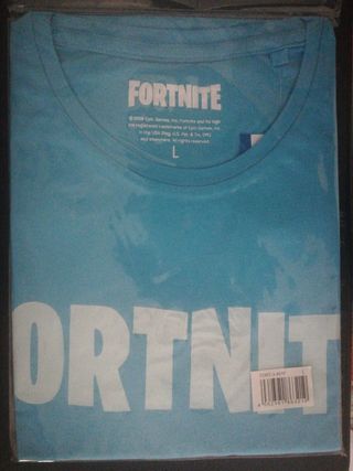 T-shirt oficial do jogo Fortnite, selada em embalagem tamanho L. Preco unitario Cores em azul ou verde Marca: FORTNITE material: 100% algodão produto oficialmente licenciado Logotipo da marca na frente decote redondo elástico, punhos e bainha Manga curta tamanho normal L material elástico confortável de usar NOVO, com rótulo e embalagem original