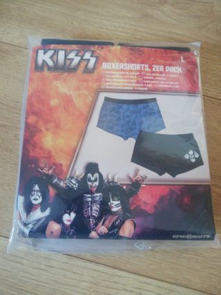 Conjunto de 2 boxers para homem, alusivas à banda Kiss. Tamanho L, produto oficial e novo.