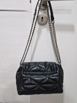 Linda mala pequena, ideal para usar no dia a dia. - Modelo transversal - Fecho funcional - Cor: Preta - Material: Sintético com matelassê - Alça em corrente metálica