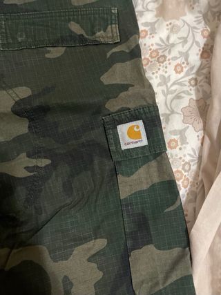 Calções estilo tropa com padrão camuflado. - Bolsos cargo. - Etiqueta da marca no bolso.