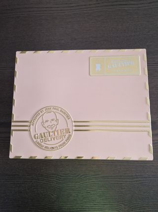 Lata decorativa da Jean Paul Gaultier, com um design elegante. Só a lata, sem perfume. - Acabamento em dourado e rosa. - Detalhes em relevo com o nome da marca e selo Gaultier Delivery. - Inspirada em um envelope.