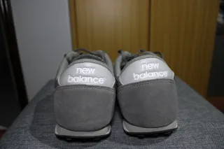 Tênis New Balance em tom de cinza, com o icônico N lateral. - Design moderno e casual. - Detalhes em camurça e tecido. - Solado branco com biqueira preta.