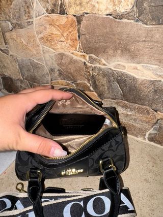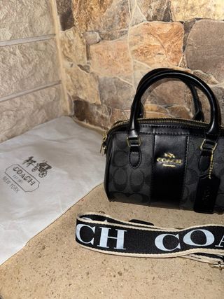 Mini baú Coach alça tiracolo preta e dourada