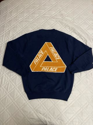 Camisola da marca Palace, em azul e em estado novo. - Logo 'P' bordado na frente. - Gola redonda. - Mangas compridas.