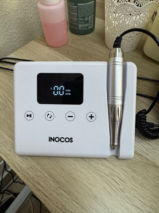 Broca para unhas da marca Inocos, em acabamento prata e branco. - Design moderno e compacto. - Inclui cabo de ligação.