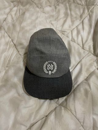 Boné da marca Mitchell & Ness em tom cinza. Possui um design moderno com um emblema bordado. - Emblema com detalhe de folhas e letra M. - Aba curva. - Tecido texturizado.