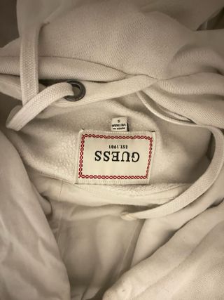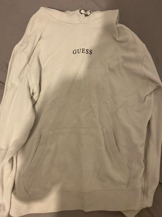 Sweatshirt da marca Guess em branco. - Tamanho S. - Gola redonda com capuz. - Bolso frontal tipo canguru.