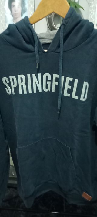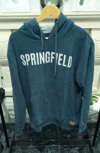 Sweat com capuz da marca Springfield, em tom azul . Possui um bolso frontal canguru e cordões ajustáveis no capuz. - Logo da marca estampado na frente. - Etiqueta discreta na barra.