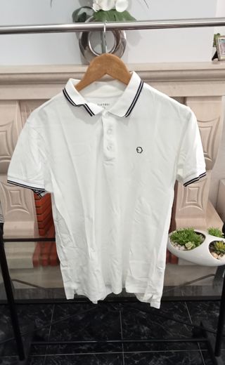 Polo de manga curta com detalhes nas mangas e gola. Polo Pouco usado da marca Tiffosi de Manga Curta em Bom Estado para Homem de cor Branca. - Gola polo com botões. - Detalhes listrados na gola e nas mangas.