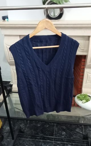 Camisola sem mangas com um padrão de malha grossa e decote em V. - Padrão de malha grossa. - Decote em V. - Sem mangas.