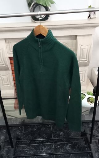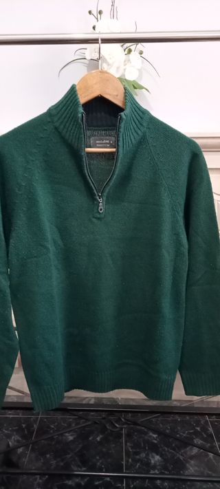 Camisola de malha com fecho parcial no pescoço. - Gola alta canelada. - Manga comprida. - Punhos e bainha canelados.