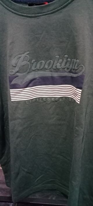 T-shirt de manga comprida com um design moderno. 50% Algodão 50% Poliester. - Estampa Brookly com detalhes em listras. - Gola redonda. - Tecido confortável.