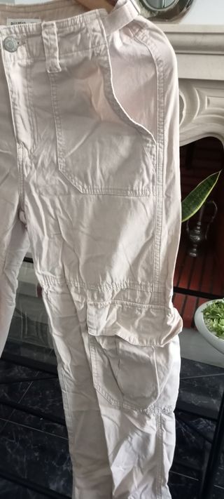 Calças cargo em tom bege da Pull&Bear. Um modelo versátil e prático. - Bolsos cargo nas laterais. - Cintura com passadores para cinto. - Fecho de botão e fecho de correr.