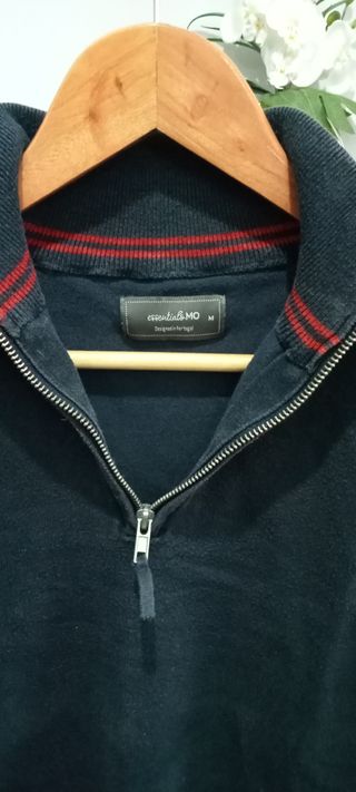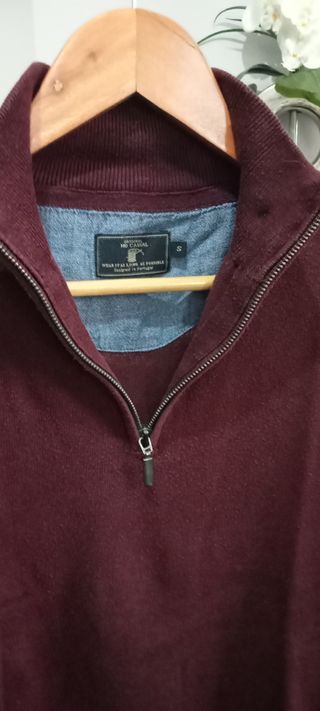 Camisola de malha MO Casual em tom Bordeaux, com fecho parcial. - Gola alta canelada. - Fecho de correr metálico. - Design confortável e versátil.