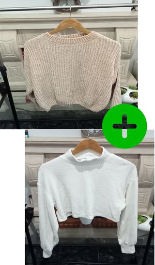 Conjunto de blusa creme e top branco da Bershka. - Blusa em malha com gola alta. - Top branco com textura. - Tamanho único.