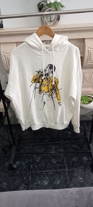 Sweatshirt branca com estampa gráfica. Sweat Usada de cor Branca da marca Lefties em Bom estado. - Estampa de artista. - Capuz com cordão. - Manga comprida.