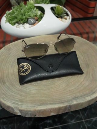 Óculos de sol da Ray-Ban Cockpit . - Lentes com gradiente castanho. - Armação metálica prateada. - Inclui estojo protetor preto.