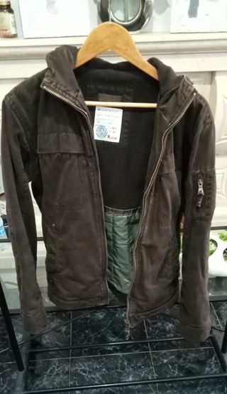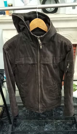 Casaco usado com Capuz da marca Springfield de cor Castanha em Bom Estado. Tem 4 Algibeiras exteriores e 1 no interior. - Fecho frontal. - Bolsos com fecho. - Detalhe de bolso na manga.