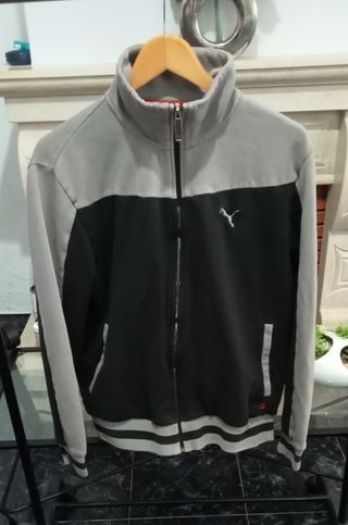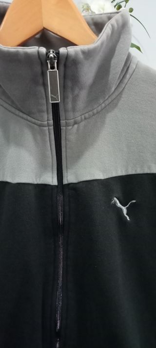Casaco desportivo vintage da Puma, com um design clássico em preto e cinza. - Gola alta com fecho completo. - Bolsos laterais. - Punhos e bainha canelados.