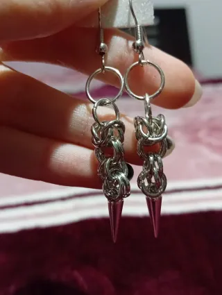 Brincos com um estilo alternativo e punk. - Design com spikes e argolas. - Fecho de anzol.