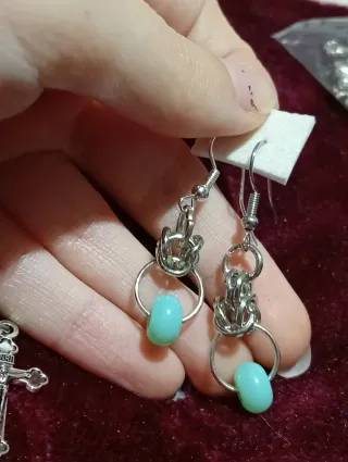 Brincos com um design alternativo e moderno. - Detalhes em metal prateado. - Contas em tom azul claro. - Estilo único para complementar o seu visual. #hippies #hippie #punk #art #alternativo #goth