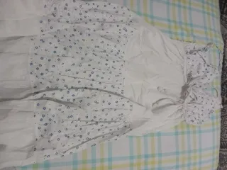 Vestido longo com um delicado estampado floral. - Tecido leve e confortável. - Detalhe de amarração na cintura. - Fechamento frontal com botões.