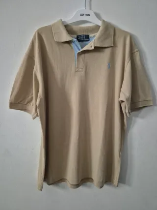 Polo clássico da Polo Ralph Lauren em tom bege. Possui um pequeno detalhe em azul claro na gola. - Gola polo. - Manga curta. - Logo bordado no peito.