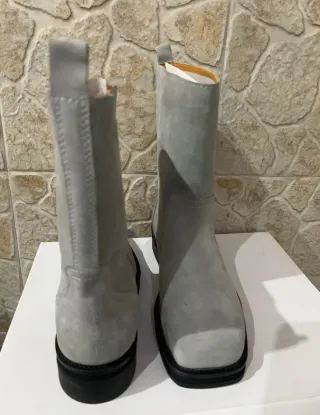 Botas de camurça em cinza, com um design moderno e confortável. - Material: Camurça - Cor: Cinza - Novo e de alta qualidade