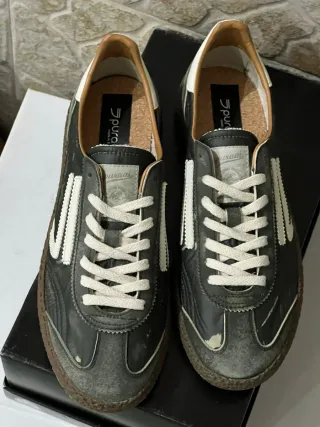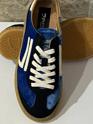 Tênis da marca italiana Puraai, com um estilo vintage e confortável. - Design clássico com detalhes em branco. - Solado em borracha. - Interior em cortiça para maior conforto.