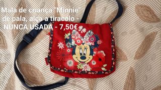 Mala de menina MINNIE, vermelha, em tecido e com alça a tiracolo. Espaçosa e com 2 bolsas. Nunca usada, está nova!