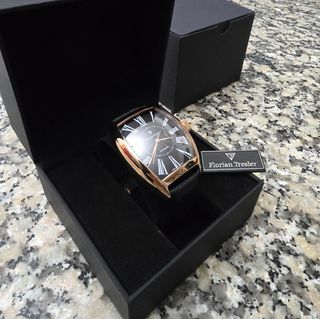 PREÇO FIXO Florian Tresler Dynamic Leader FT2.009 *Automático *Movimento: ETA 2824-2 (Swiss Made) *Tamanho caixa: 40mm *Lug-to-lug: 53mm *Vidro em safira *Caixa em aço revestido a PVD rose gold *Mostrador com fundo preto, com ponteiros em rose gold, indexes em branco e data (dia do mês) *Bracelete preta em pele italiana genuína Full set: inclui caixas, etiqueta e manual de instruções !!! Relógio novo por estrear. Sem quaisquer utilizações !!!