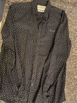 Camisa social Calvin Klein, tamanho S, na cor axul marinho. É uma peça estilosa e discreta, com um padrão de pequenas flores brancas. - Modelagem clássica. - Tecido leve e confortável. - Botões funcionais.