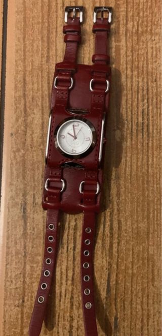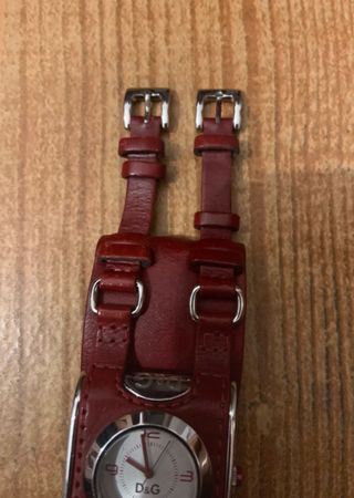 Relógio de pulso D&G, charmoso e elegante. - Pulseira de couro vermelha. - Detalhes em prata. - Mostrador branco. - Design moderno e sofisticado.