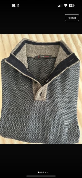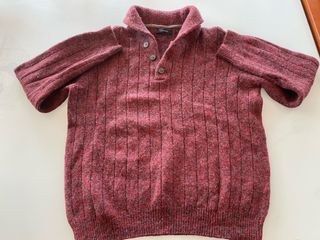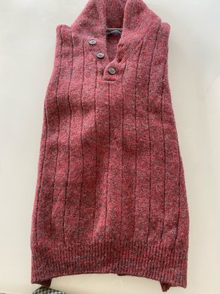 Camisola de lã vermelha para homem, de gola alta e botões. - Feita de um material macio e confortável. - Apresenta um design canelado. - Em excelente estado.