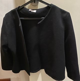 Casaco elegante e estruturado, ideal para diversas ocasiões. - Modelo de comprimento curto. - Tecido canelado.