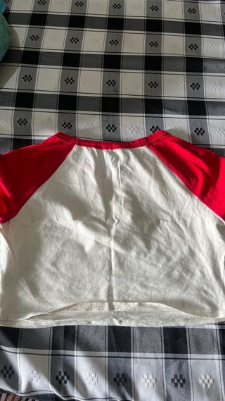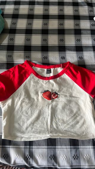 Top da Shein com um divertido padrão de morangos. - Mangas curtas em contraste. - Gola redonda. - Estampa de morangos no centro. Usado poucas vezes.